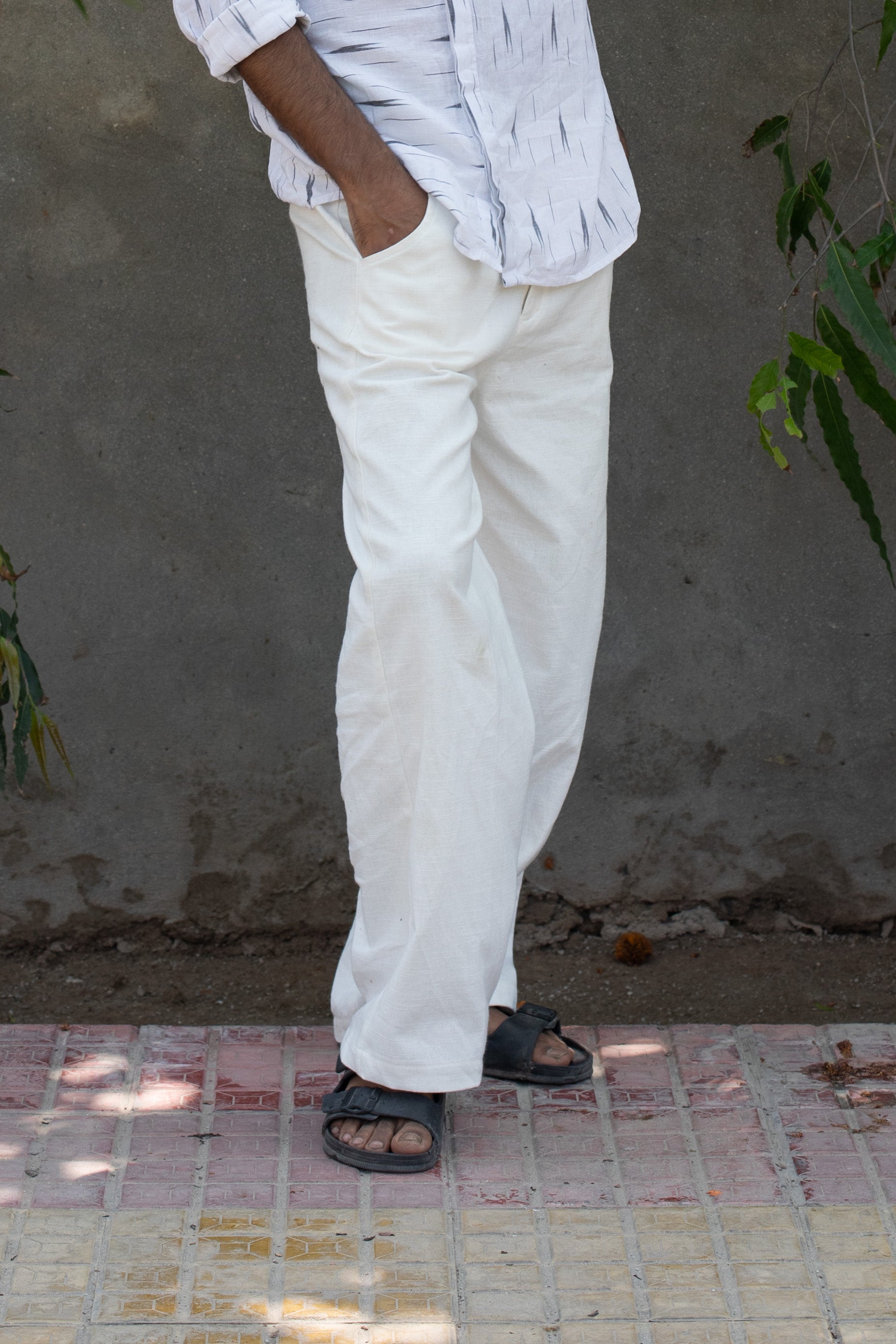 Classic straight fit pants in a pearly white heavy weight slub cotton, the perfect basic addition to your wardrobe.