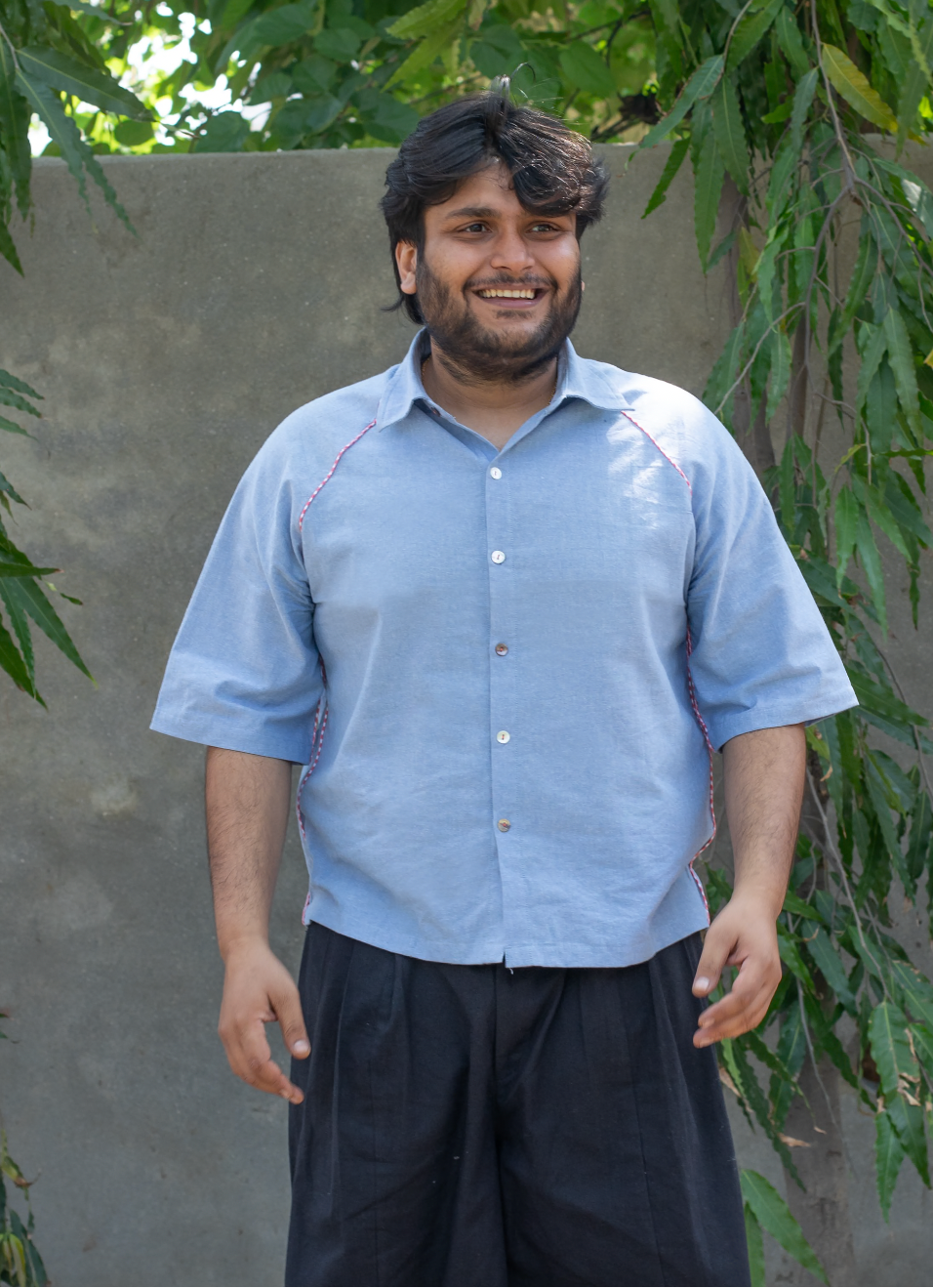 mismatched shell buttons stitched with contrast redthread add that extra design touch.